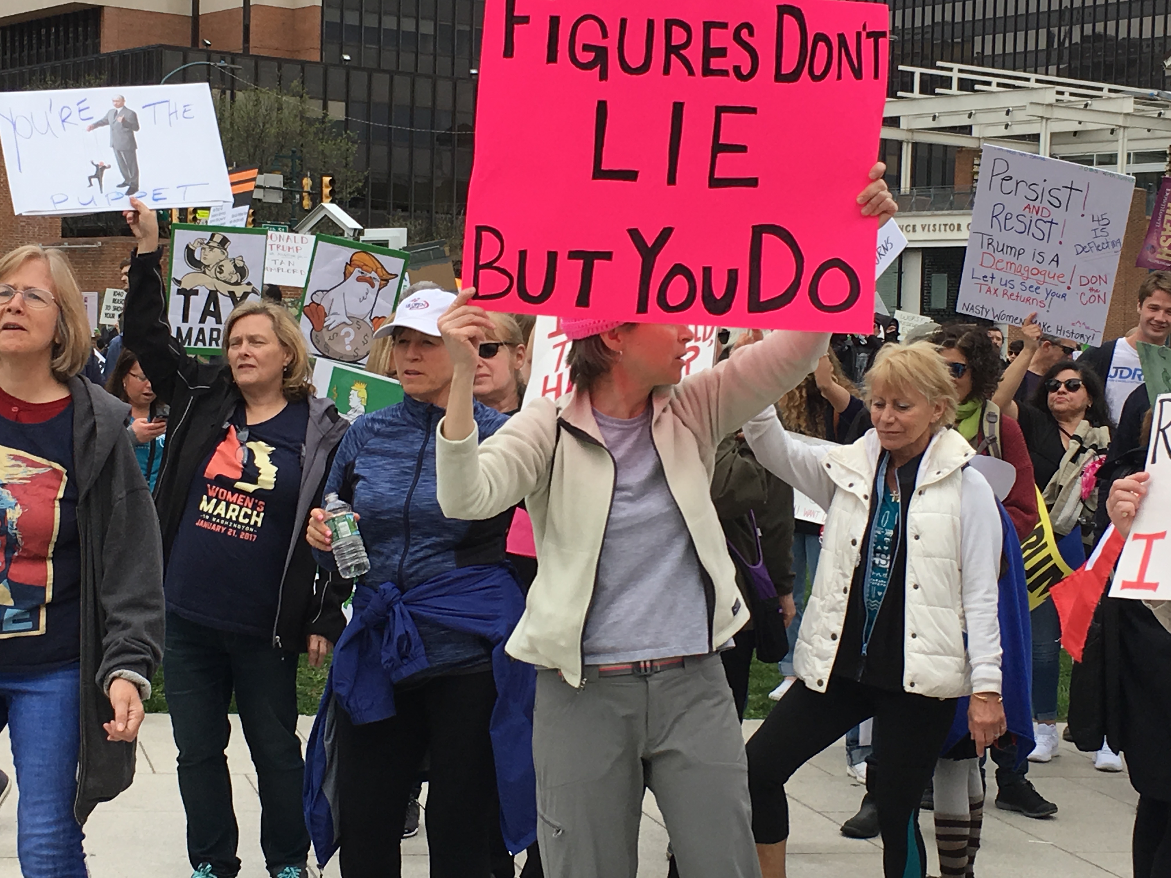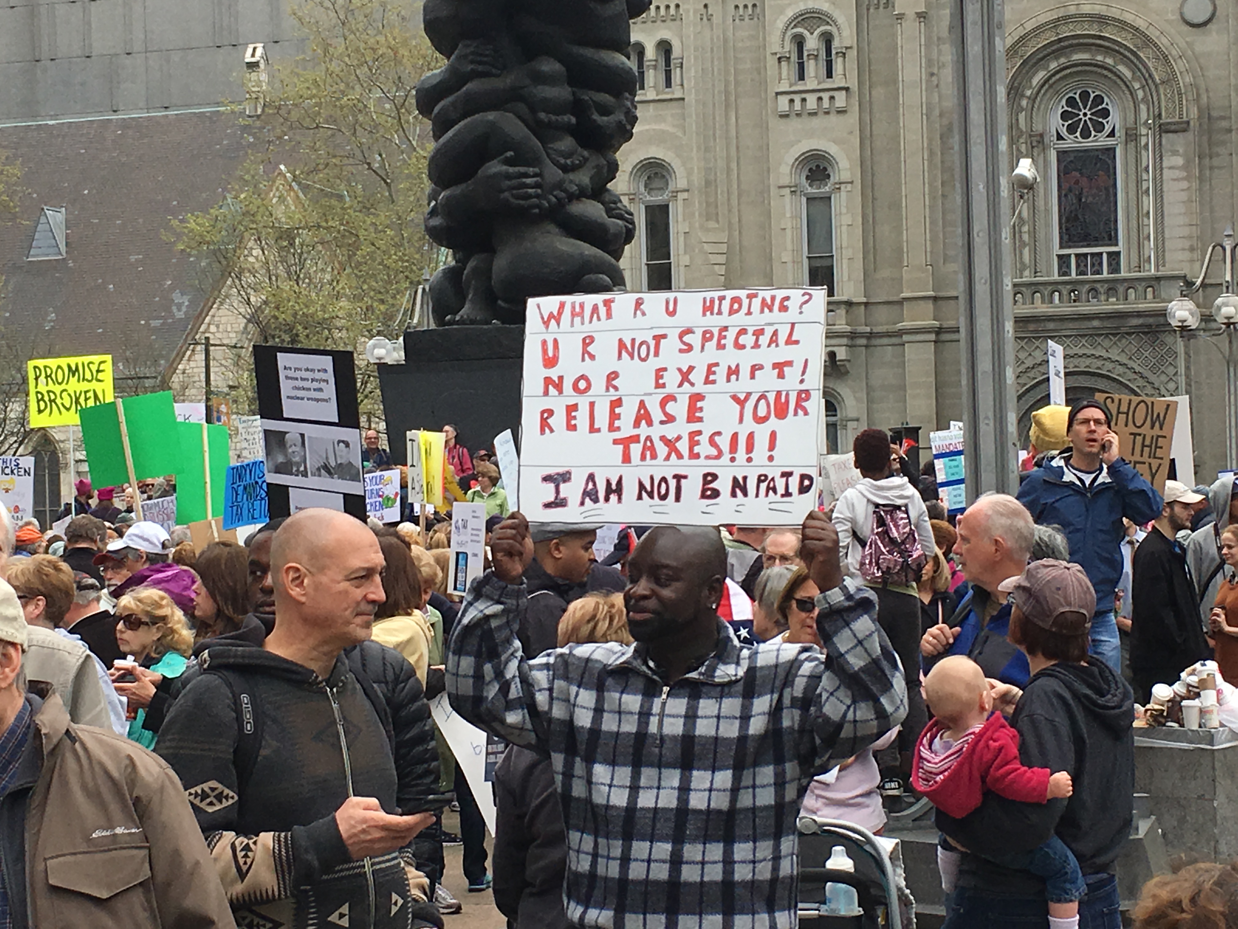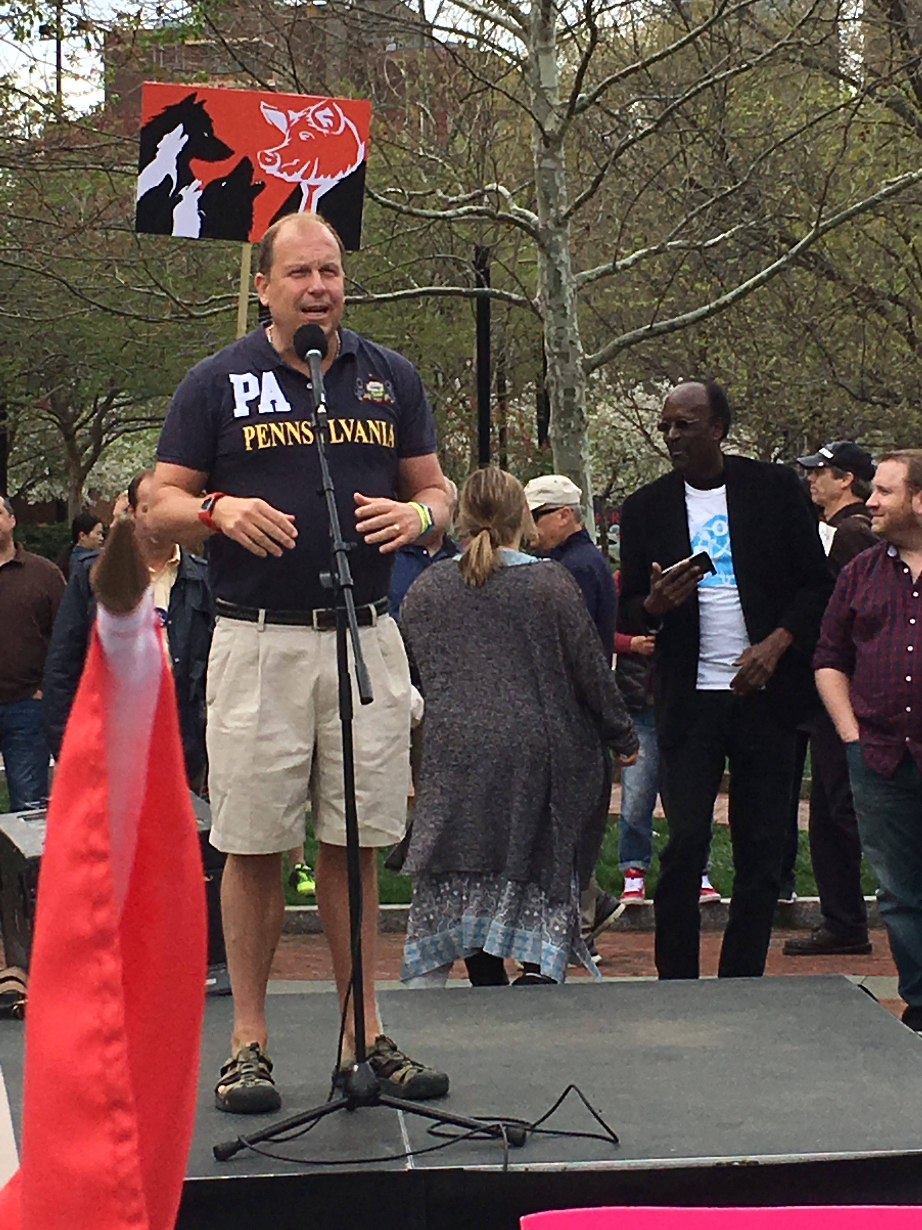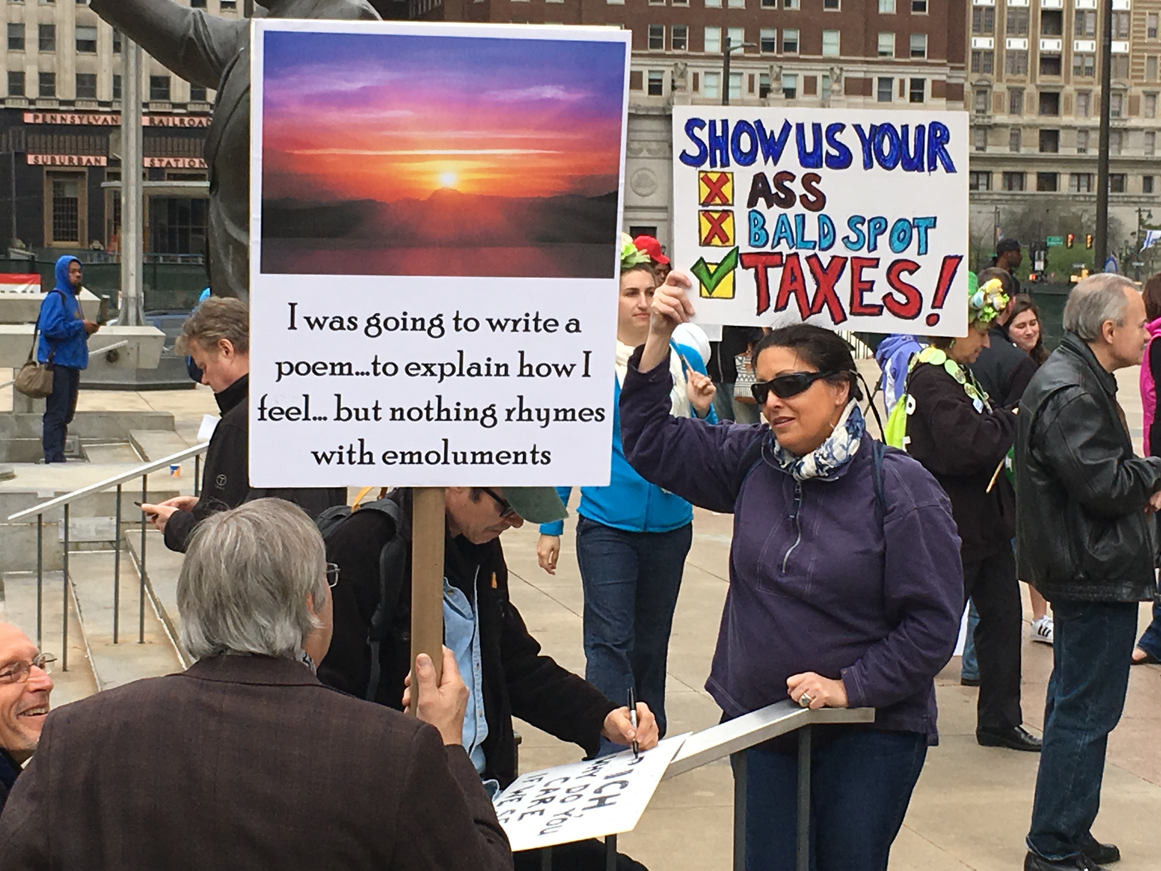 An estimated 5000 people showed up today in Philadelphia to tell Donald Trump “Show us your taxes!” Rallies are fun. Daylin Leach gave a crowd pleasing speech about the issue. See the inventive signs below.